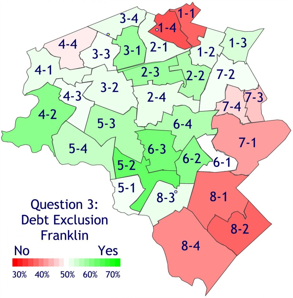 - Around Franklin, voters in Ward 3, precincts 3 and 4 voted against the override and the debt exclusion for Countryside, but both precincts voted in favor of the debt exclusion for their school.