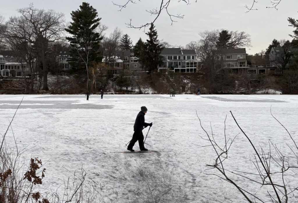 On Monday, January 5, recreational hockey enthusiasts, those struggling to find balance, and even a few four-legged cold-weather fans enjoyed a rare day on the ice at Auburndale Cove, the only authorized outdoor skating area in Newton. “I like outdoor skating better [than an indoor rink],” said Mae Franklin, 11,…
