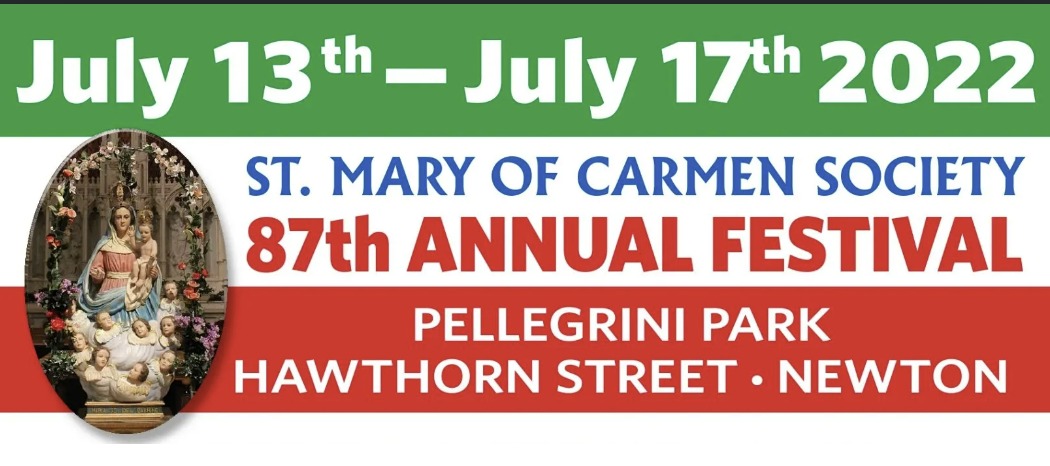 Founded in 1935 as a mutual benefit society, St. Mary of Carmen Society has been hosting a five-day festival beginning on a Wednesday in nid-July at Pellegrini Park Hawthorne Park in Nonantum, and ending with a huge fireworks display on the following Sunday night at Our Lady Help of Christians Church. This year, it takes place July 13-17. Chuck Proia, a third-generation Nonantum resident, chairs the event, which attracts thousands of people from all over the region. In fact, people with ties to the neighborhood, but no longer living in Massachusetts, plan their vacations to include the event, known as Festa.
