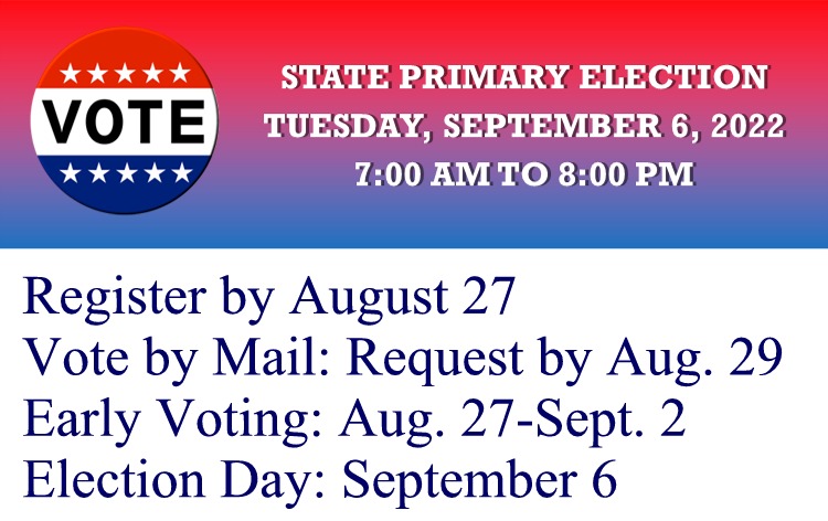 State Primary Elections will be held on September 6. Vote by mail: Request mail-in ballot by August 29 at 5PM. Early in-person voting at City Clerk’s office in City Hall: Sunday, August 28 (11AM-5PM) Monday-Friday, August 29-September 2 (8:30AM-5PM) Election Day in-person voting: September 6 (7AM-8PM) (Where to vote?)