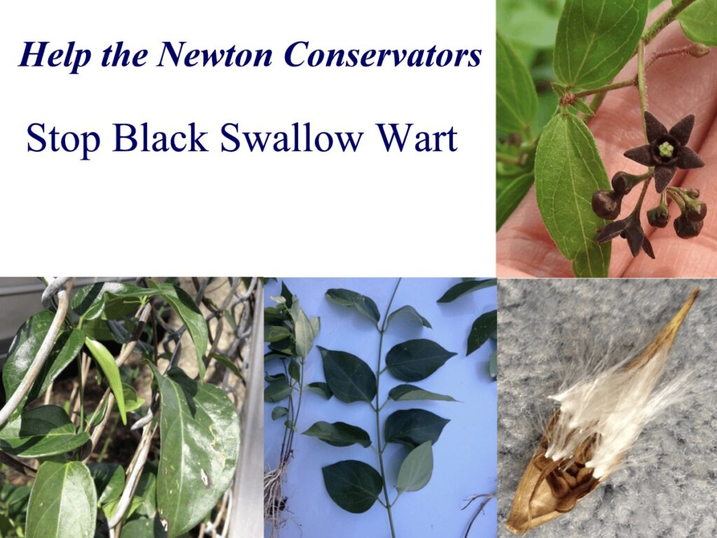 The Newton Conservators are calling on all of us to watch out for Black Swallow Wort, a non-native plant that reduces biodiversity, degrades the environment, and is fatal to Monarch butterflies. This vine has blue-green, glossy leaves, small purple flowers, and large seed pods that hang like pea pods. Dig…