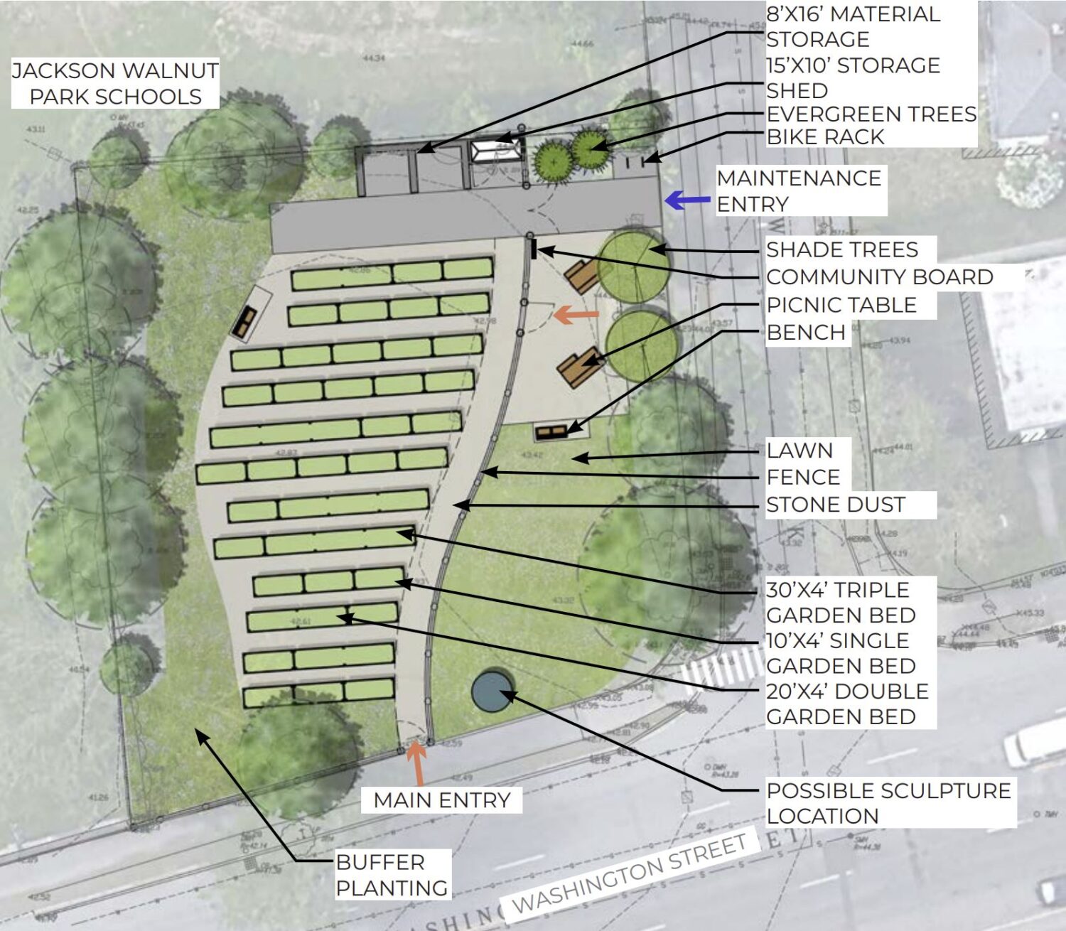 Newton’s Parks, Recreation, and Culture Department hosted an online community webinar on Monday, August 29 to discuss updates to the community garden planning for a quarter-acre site located at the corner of Washington Street and Walnut Park in Nonantum. A neighborhood “friends” group has been working with Councilors in Ward 1 and the City to create a community garden on the north side of the city, using ARPA funding. Currently, the plan calls for fully accessible garden beds, with room for open-space gathering areas and the addition of shade trees.
