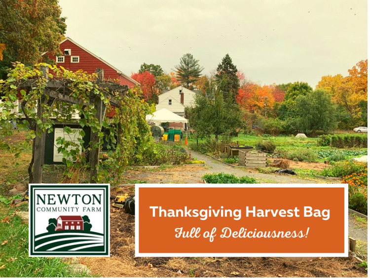 Newton Community Farm is offering bags of fresh vegetables and fruit from its farm and other local farms, for pickup on November 21, 3PM-5PM at the Farm’s white tent, lowest level of the big red barn. Order ahead online for $75 per bag.