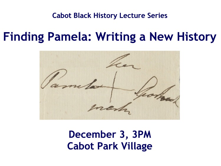 On December 1 at 3PM, Newton historian Cynthia Cowan will speak about Finding Pamela: Writing a New History in the Community Room at Cabot Park Village (280 Newtonville Ave.). In her talk, Ms Cowan will examine the life of Pamela Sparhawk, a formerly enslaved Black woman who, after more than a decade of…