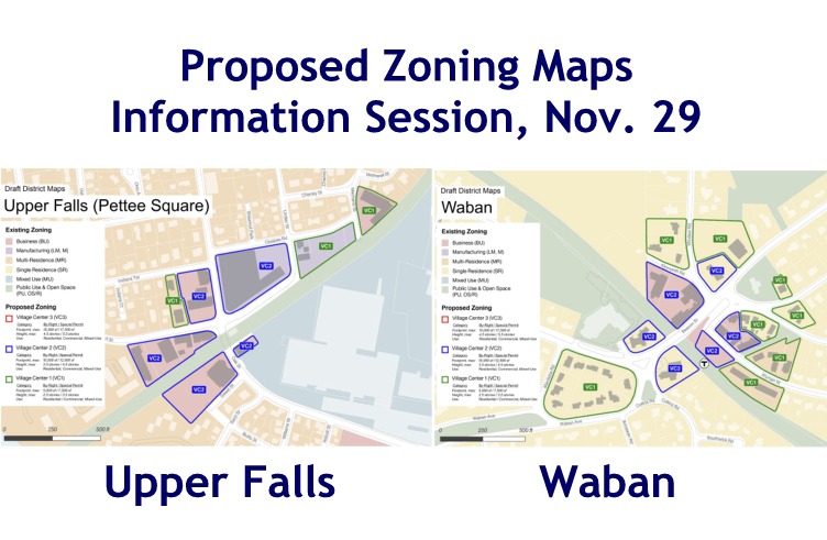 Over 100 people participated in the November 29 online information session about proposed zoning maps for Upper Falls and Waban. The meeting was led by the City’s Planning Department. After a brief presentation on the process of creating the maps and an explanation of the different Village Center Districts, the…