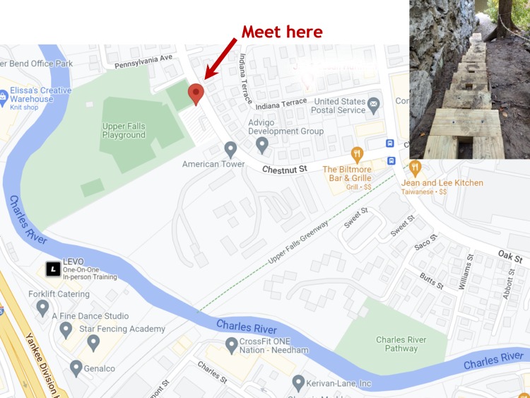 The Friends of the Upper Falls Greenway will host a community tour of the Upper Falls Riverwalk on Sunday, December 4, starting at 1PM. Please meet at the benches near the Braceland Park parking lot, south of the Chestnut St – Pennsylvania Ave intersection in Newton Upper Falls (map). The tour will take about an hour.