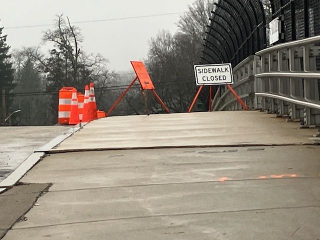 As of Tuesday, January 3, the west side of the Auburn Street overpass remained closed to foot traffic. However, the stairs leading from the overpass to the Auburndale Commuter Rail station were open to passengers.