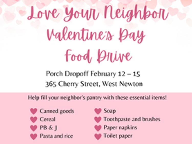 The Ward 3 Democratic Committee is holding a food drive, February 12-15, to benefit the Arabic Baptist Food Pantry. Please drop off the following items on the porch at 365 Cherry Street, West Newton. (Please, no glass containers and nothing beyond its expiration date.)