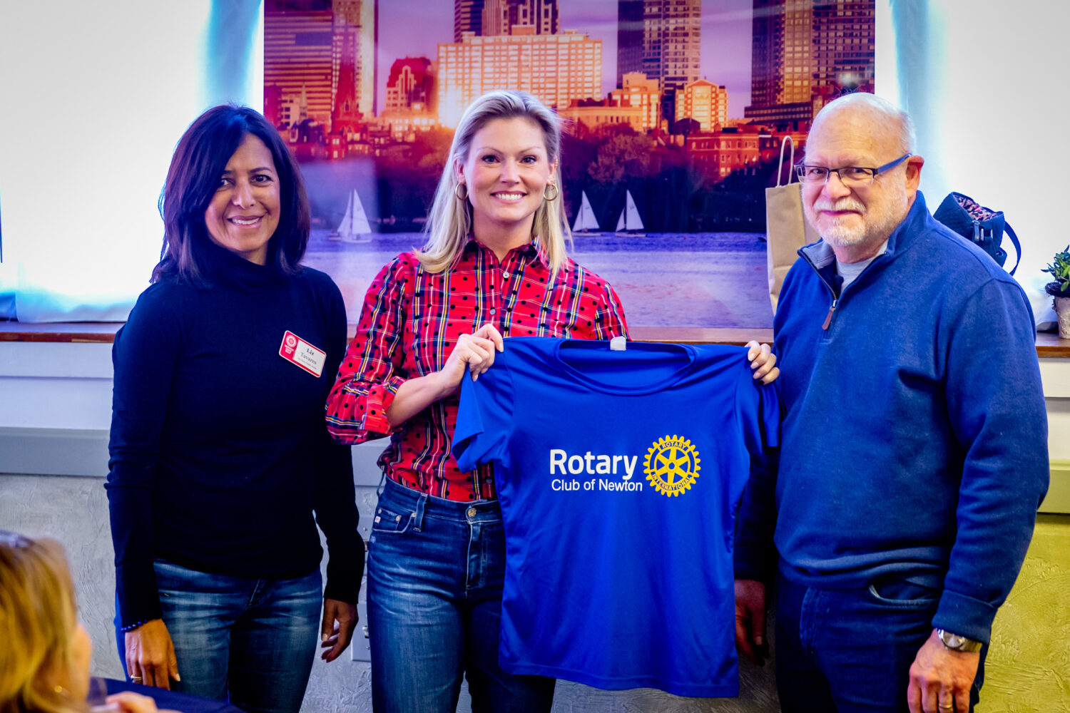 Ashley Garcia will run the 127th Boston Marathon on April 17th, representing the Newton Rotary Foundation. She aims to raise $7,500 to fund the vocational and RYLA scholarships awarded to Newton High School students each spring. Ashley spoke to the club on February 7th, receiving her race jersey from President Andy Willinger and President-Elect Liz Tavares.