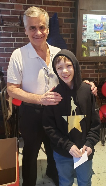 Yesterday, the two heroes met when Nate’s family stopped by Cabot’s and Nate delivered a thank-you card to Joe. “I am so happy Mr. Prestejohn threw me this party and that I got to meet him in person — Cabot’s is my favorite, and we have all our family celebrations there. My mom says putting good out into the world will bring good stuff back to you. Mr. Prestejohn made that happen!”