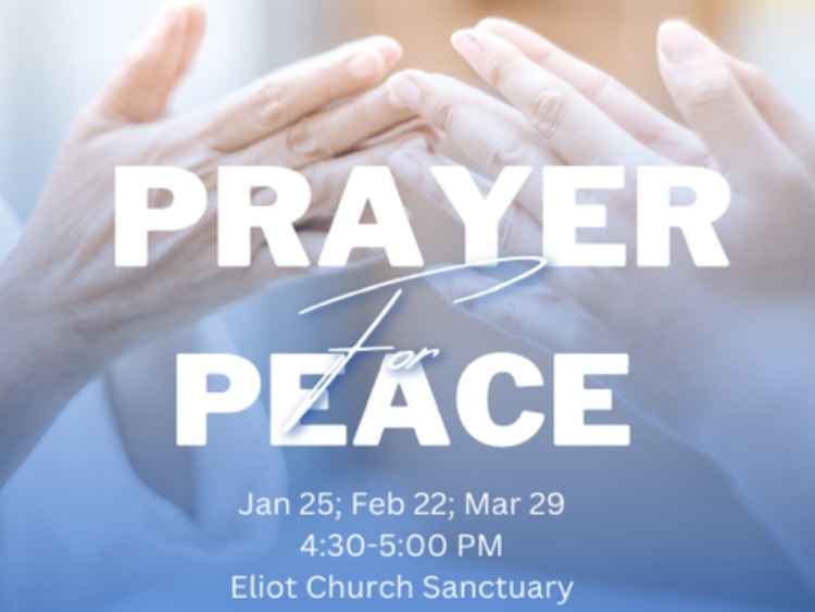 In response to the recent shootings in Monterey Park, Baton Rouge, and Half Moon Bay, Rev. Domenik Ackermann invites all to a Prayer for Peace in the Eliot Church sanctuary (474 Centre Street, Newton Corner) , 4:30PM-5PM on January 25, February 2, and March 29.