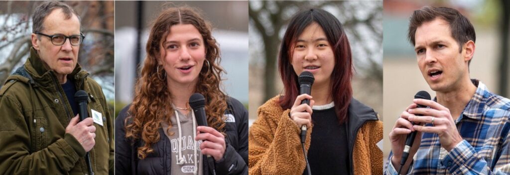 At the rally at 1PM on April 21, hosted by the Newton Democrats Climate Crisis Subcommittee, almost 100 neighbors, activists, local and state officials converged on Newton Centre Green to discuss the real menace of global warming. Speaking first was Gary Rucinski, who co-chairs the Subcommittee and who organized the event with Martina Jackson, Public Policy chair of the Democratic State Committee (and a member of the board of Fig City News).
