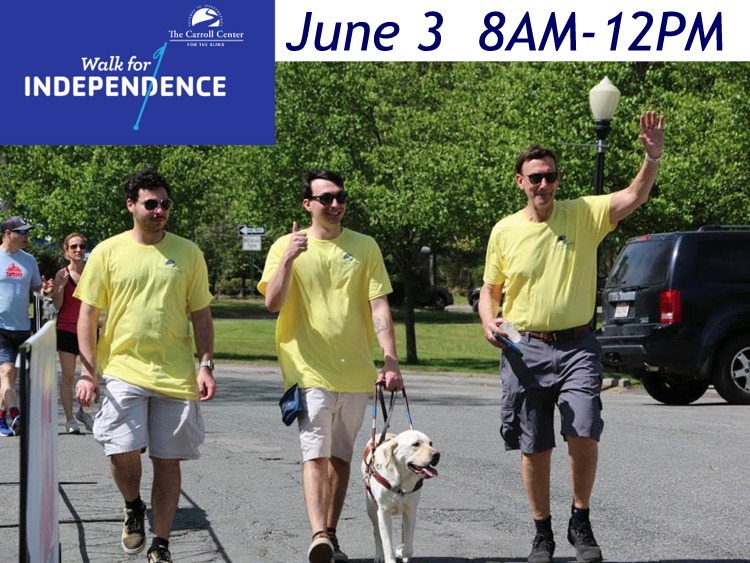 Newton’s Carroll Center for the Blind, one of the largest vision rehabilitation agencies in the nation, will host its 11th Annual Walk for Independence on Saturday, June 3, 8AM-Noon. It’s a family-friendly event bringing together both sighted and visually impaired individuals to support the nonprofit organization’s mission. Walkers can choose either a one-, two- or three-mile stroll around the Mount Ida Campus of UMass Amherst (100 Carlson Avenue) and stay for complimentary food, music, accessible games and fun giveaways. Guide dogs and family pets on leashes are welcome. Individuals and teams can register here.