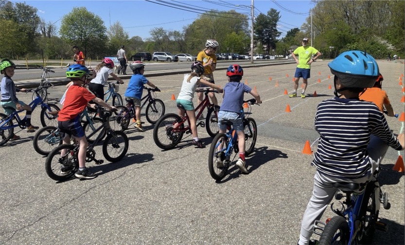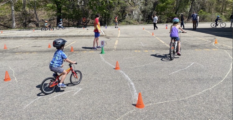 This past Sunday, Newton students in grades K-6 brushed up on their bike skills at Newton’s third annual Bike Rodeo at Newton South High School, hosted by Newton Parks, Recreation & Culture with bicycle instructors from Massachusetts Safe Routes to School and volunteers from Newton Safe Routes to School and Bike Newton. The Ligerbots – Newton’s community-minded high-school robotics team – created a practice course. Newton Police Officer Helms brought his police bike to share with students, and Officer Lau and police dog Leo were a hit. Families also reviewed tips for bike maintenance, helmet fit, securing bikes, and rules of the road.