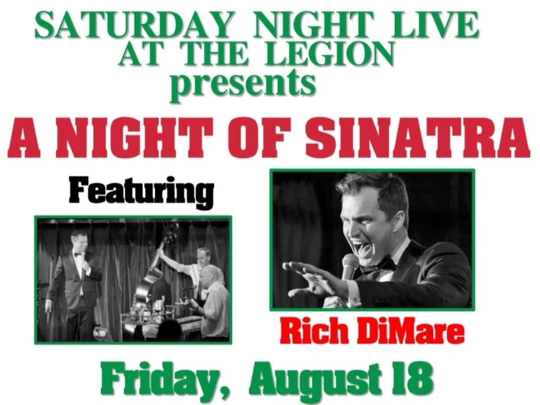 The American Legion Nonantum Post 440 is hosting A Night of Sinatra featuring Rich DiMare on August 18, 8PM to benefit veterans. It will take place at the American Legion Post 440 (295 California Street, Nonantum) and will cost $20 upon entry. For more information, call Paul Pasquarosa at 781-856-7672.
