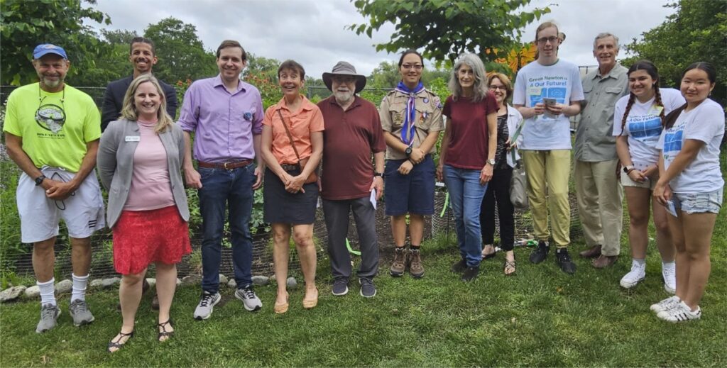 This pollinator garden is Newton’s first public garden with these plants chosen for saving bees and butterflies at risk of local extinction. Wallober and Nogee spent months planning the garden, securing funding, and engaging the City’s Parks, Recreation & Culture Department. Attending the ceremony were Commissioner Nicole Banks, Senior Adult Director Nancy Scammon, Director of Open Space Luis Perez Demorizi, Director of Cultural Development Paula Gannon, Councilors Andreae Downs and Bill Humphrey, and representatives of Green Newton and Newton Conservators. Councilor Alicia Bowman, founder of the Newton Community Pollinator Project, was not able to attend.