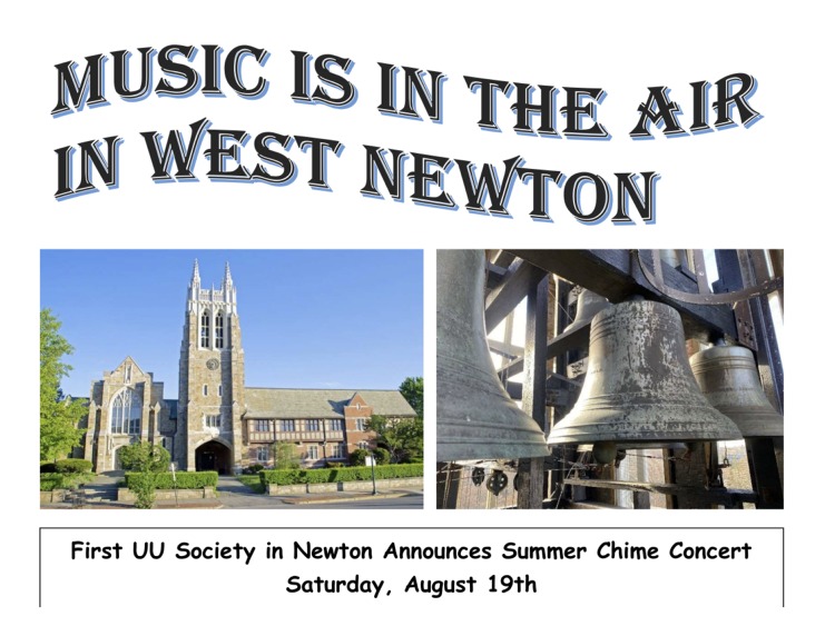 The First Unitarian Universalist Society in Newton is hosting a series of free summer chime concerts, and the next (and last) one will be offered at 5PM on August 19 and will continue for about one hour.
