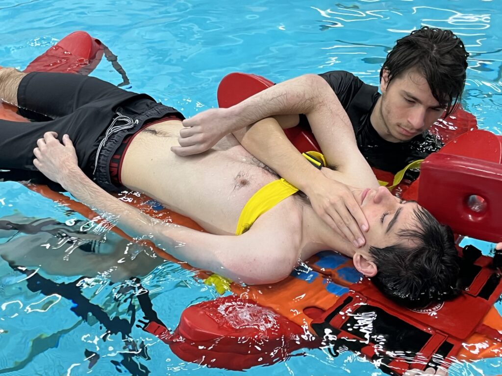 Strapped to an orange board while playing an unconscious drowning victim, Joseph Manna could only lie immobile while his fellow lifeguards-in-training “saved” him. The Newton South sophomore and other students aiming to be American Red Cross-certified lifeguards have been learning essential techniques at the West Suburban YMCA’s training program. Those…
