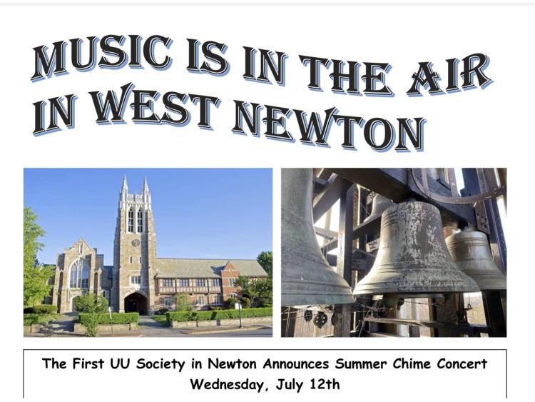 The First Unitarian Universalist Society in Newton is hosting a series of free summer chime concerts, and the next ones will be offered at 5PM on July 23 and August 19.