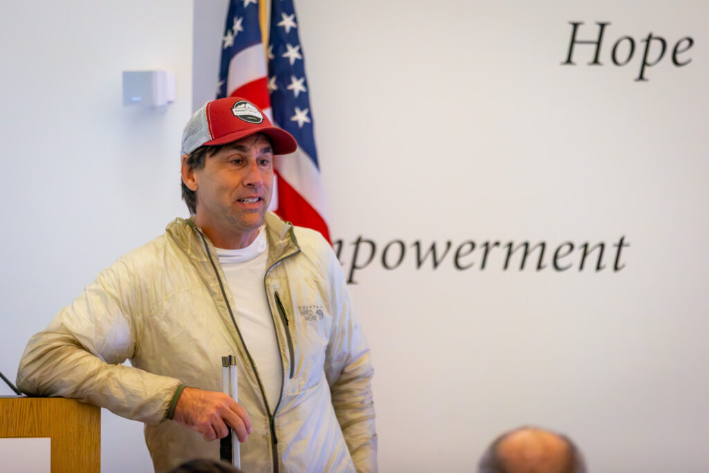 Recalling his trip with the Carroll Center to North Conway many years ago, Weihenmayer told the story of the beginning of his love for rock climbing: