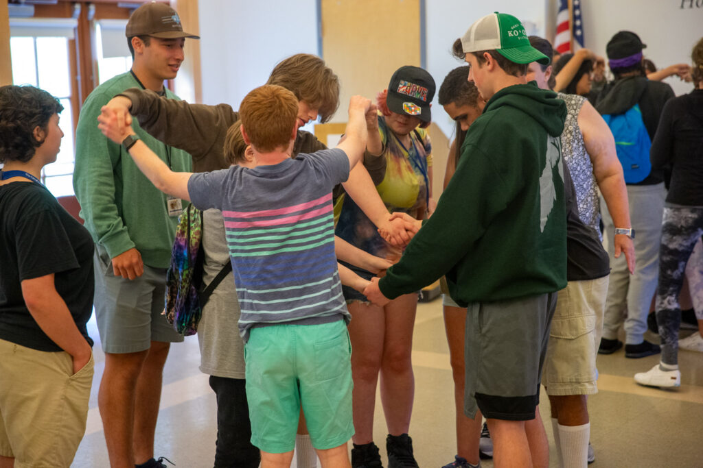 While rain storms prevented the planned tandem bicycle-riding activity, the students participated in several team-building activities with Weihenmayer to kick off their first day at camp.