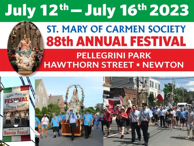 Once again, this week, Nonantum — known as “The Lake” — will be the site of its annual Italian festival. Festa Italiana reflects a close-knit community, many of whose families emigrated from San Donato Val di Comino and neighboring villages. Once again, Pellegrini Park (11 Hawthorne Street) will be the site for a wide range of carnival rides, booths, food, and raffle-ticket sales to benefit the St. Mary of Carmen Society Scholarship fund. Once again, there will be nightly entertainment — and dancing for the inspired. Once again, the median strip on Adams Street will be painted red, white, and green. And once again, the festival will include the Sunday afternoon march through the neighborhood with the Society’s statue of St. Mary of Carmen.