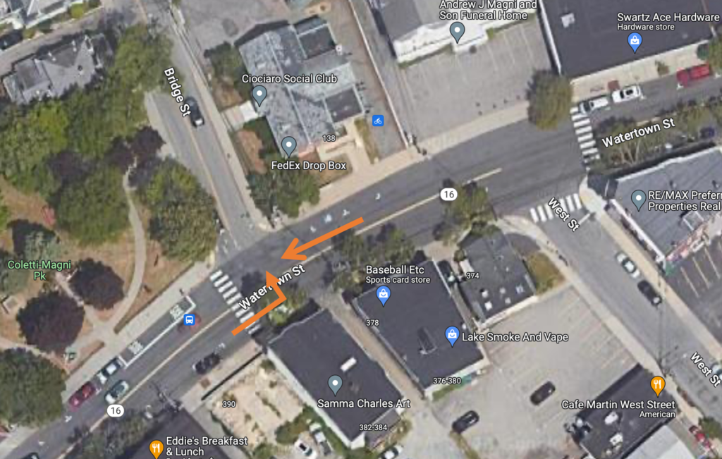 Andrew Bohm died Monday night as a result of a collision at the intersection of Watertown St. and Bridge St. in Nonantum. (Google Maps)