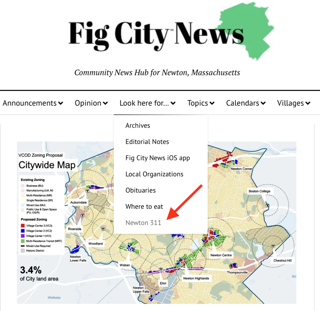 Mayor Fuller announced last week that the City’s Newton 311 mobile app for customer service has ceased functioning and should be removed from mobile phones. Instead, residents should use the City’s Newton 311 website to report problems. Fig City News has added a link to the City’s Newton 311 website under “Look Here for…” in our top menu and added 311 capability to the Fig City News iOS app.