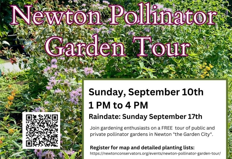 The Newton Conservators is (are?) hosting a free Newton Pollinator Garden Tour of public and private pollinator gardens on September 17, 1PM-4PM, starting at Wellington Park (off Kilburn Road, West Newton).