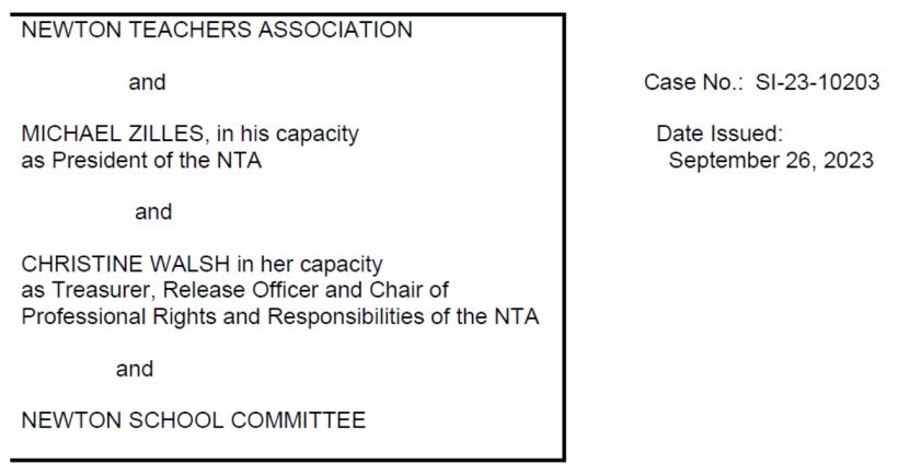 NTA Convocation Boycott Constitutes Illegal Strike, but Silent Meetings Are Permitted. On September 26, the Commonwealth Employment Relations Board (“CERB”) issued a ruling in response to the School Committee’s September 5 petition to the Massachusetts Department of Labor Relations regarding recent actions by the Newton Teachers Association. The 45-page ruling…