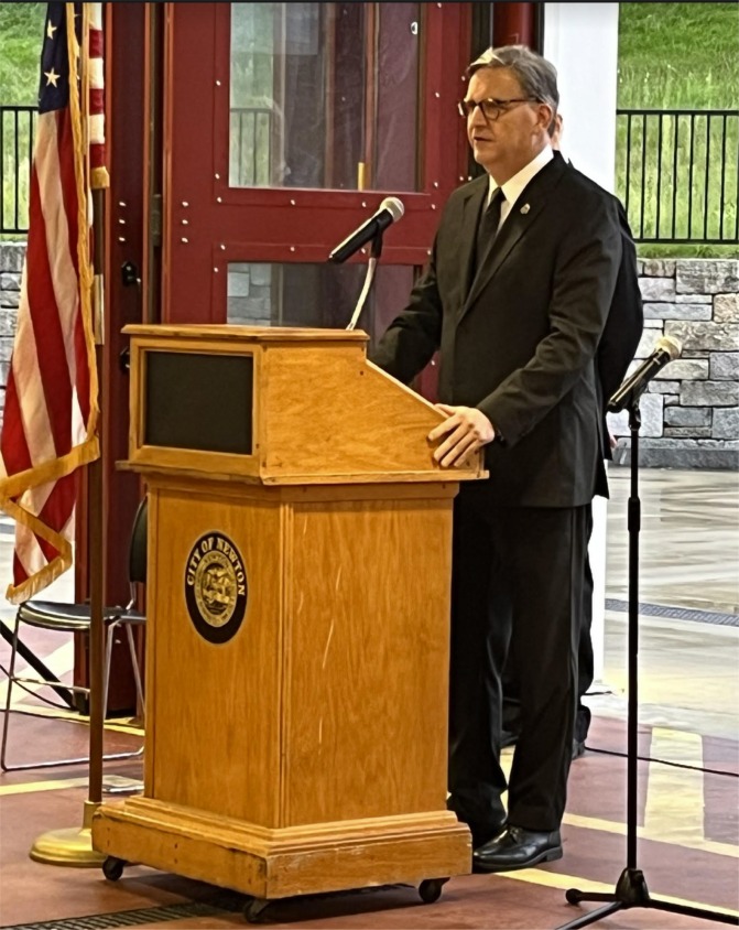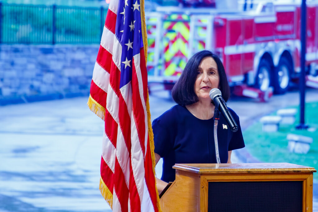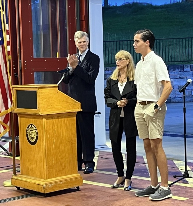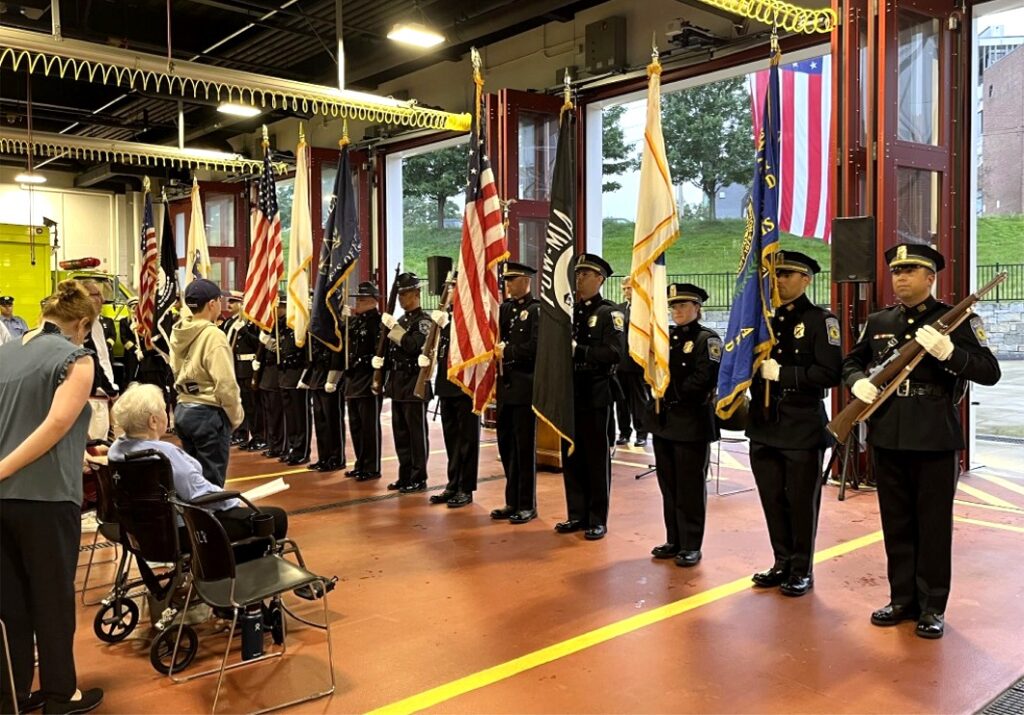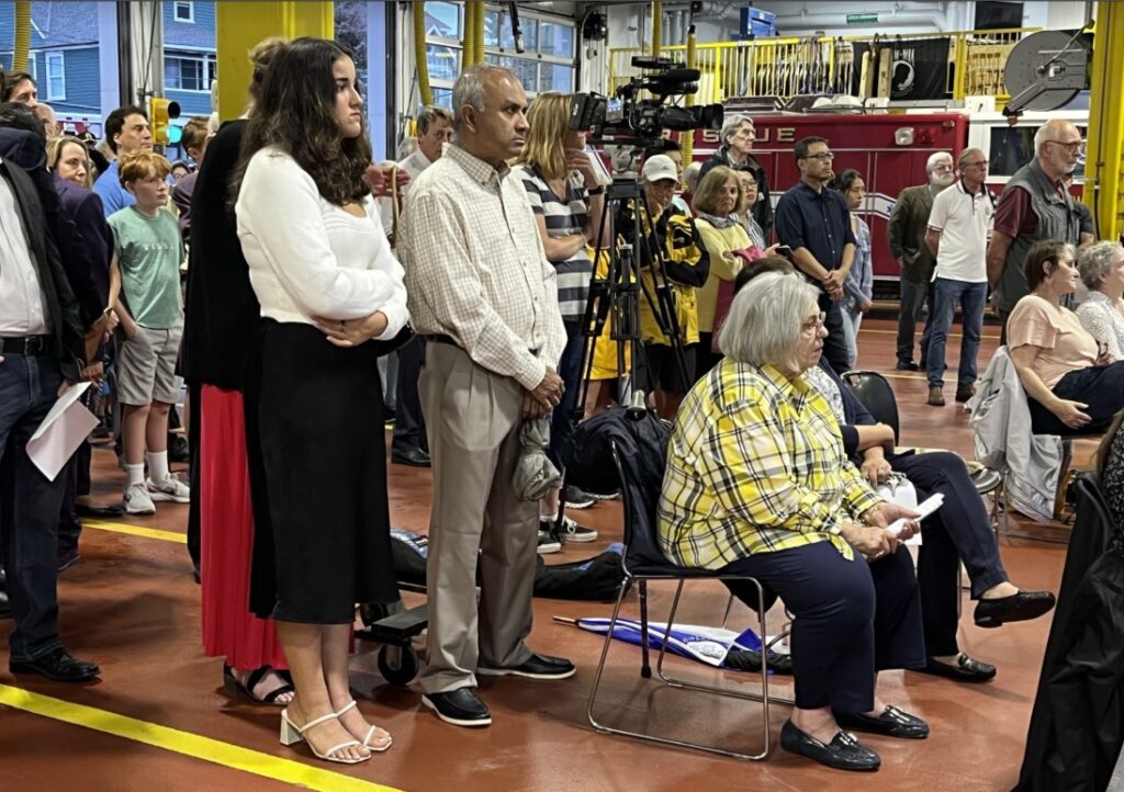 A crowd gathered inside Fire Department Headquarters at 1164 Centre Street on Monday, to honor the eight Newton residents who were killed in the terrorist attacks of September 11, 2001. To ensure the tragedy isn’t forgotten – especially in Newton, where eight victims lived – a local nonprofit created the scholarships to encourage students to learn about the events of that devastating day. This is the first year the Newton 9-11 Memorial Committee awarded these scholarships.