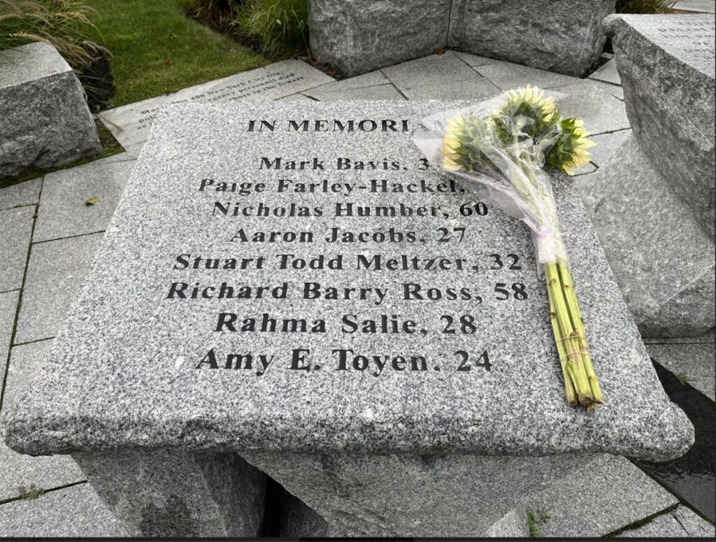 A timeline of what happened that day is carved into the memorial, written in a straightforward manner. Visitors learn that eight Newton residents “just like them … got up that morning, boarded an airplane … and were gone,” said committee member Ginny Gardner.