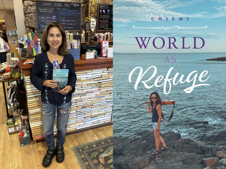 Newton resident Ingrid Chiemi is a poet, songwriter, and musician. In the past few years, she has used her artistic talents to create many songs that reflect both her life and the world’s collective experience in the age of COVID, and she has published multiple books of her lyrics. Her first book, Karma Bank to Following By Listening, was a collection of lyrics to music she composed during the pandemic, capturing the experience of being forced to slow down and listen, both to the world and to oneself. Her second book, Odd Simple Beauty, celebrated moments of creativity, hope, and connection that emerged, sometimes paradoxically, from the collective experience of COVID. Now her third book, World As Refuge, presents songs and art about collective emergence from the pandemic and the ways people are finding that lives and perspectives have been changed.