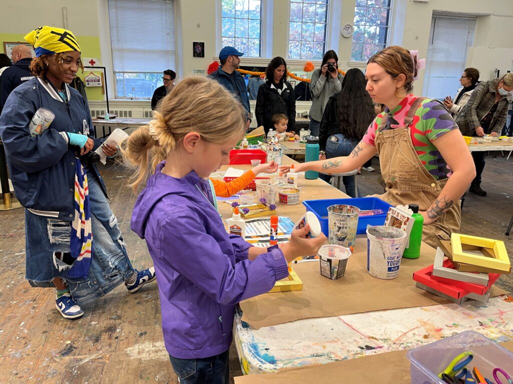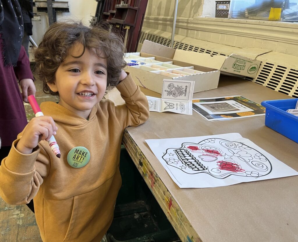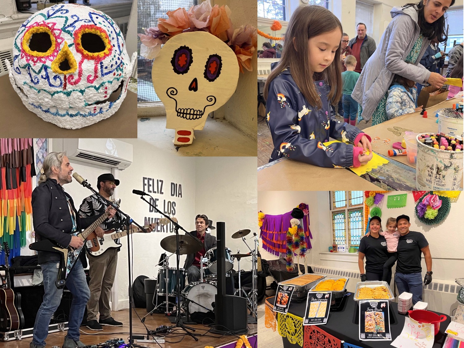 While some attendees listened to the music in one room, many parents and kids gathered around multiple craft tables in a nearby studio space. There they created their own altar elements, including tiny clay skulls, luminarias, and frames while learning more about the holiday.