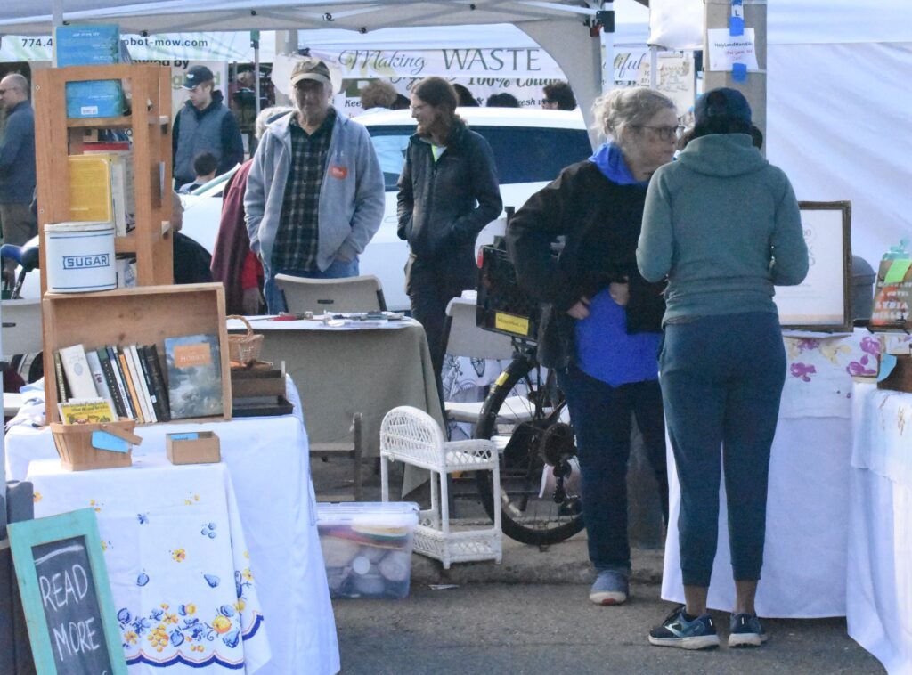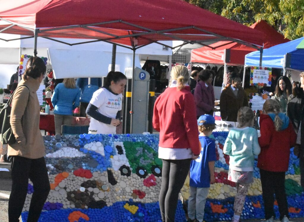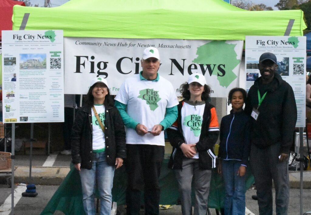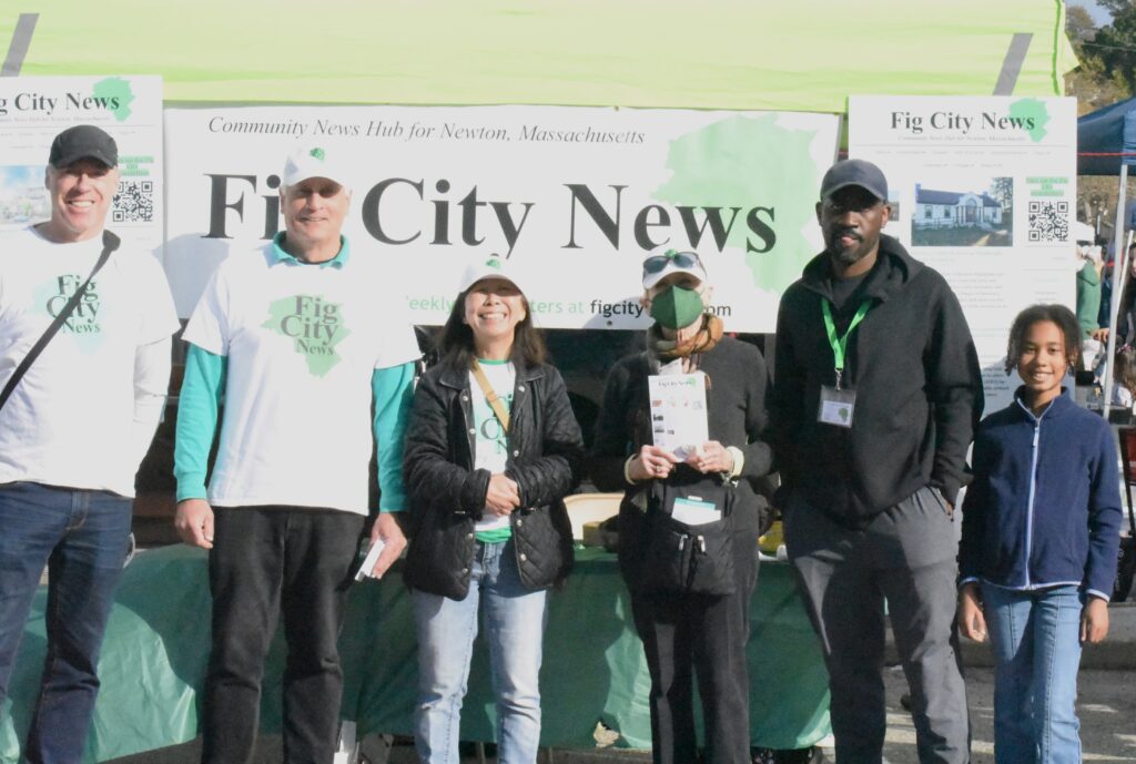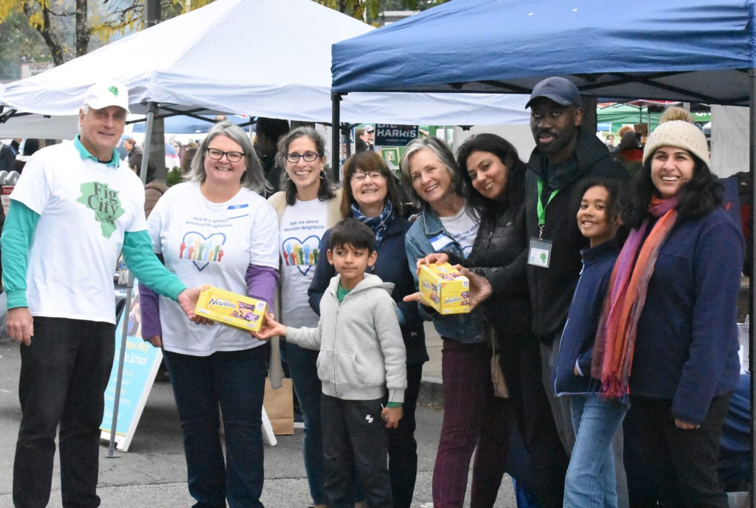 The forecasted almost-gale-force winds stayed away. The sun came out periodically. And the crowds again gathered in Newton Centre Green & Parking Lot for a terrific Newton Harvest Fair. Fig City News offered Fig Newton cookies to our booth visitors — and most importantly, in bulk to the Newton Neighbors “Drive for Five” Food Drive. Of their five requested items, we had no beans/rice, soaps, pasta, or cooking oil, but we did have individually wrapped snacks!