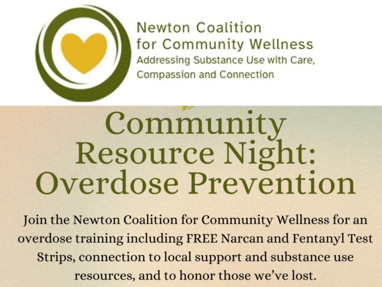 The Newton Coalition for Community Wellness will host an overdose prevention community resource night on November 29, 7PM-8:30PM, at St. Mary’s Episcopal Church (258 Concord Street, Newton Lower Falls). The evening will include a speaker series — including Mayor Ruthanne Fuller and Lower Falls resident Dr. Sarah Bagley — as well as Narcan and Fentanyl Test…