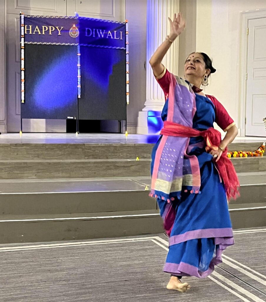 Sushmita Biswas, the program’s only adult dancer, led the evening’s entertainment with expressive choreography as she moved across the small stage and stairs.