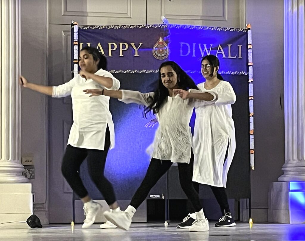 Dancers from Newton North and South High Schools and beyond entertained a crowd gathered at City Hall on November 13 to celebrate Diwali, a national holiday in India known as the Festival of Lights.