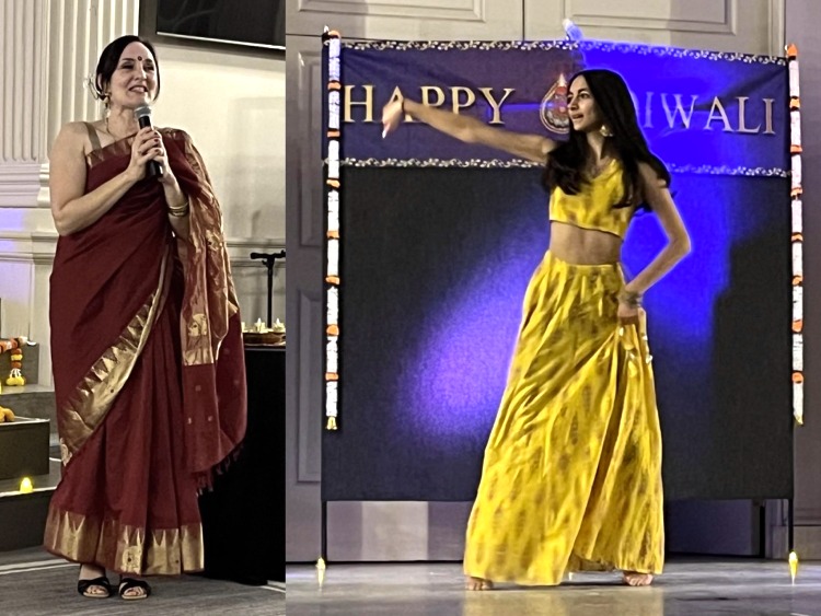 In between dances, speakers including Mayor Ruthanne Fuller, Newton South Principal Tamara Stras, School Committee member Rajeev Parlikar, and others wished attendees a happy Diwali and a prosperous year.
