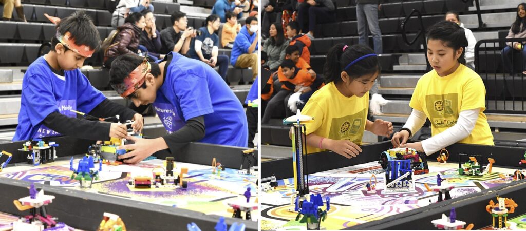 On November 18, Newton’s dual-high-school robotics team, the LigerBots, hosted a FIRST LEGO League (FLL) Newton Qualifier tournament — in which teams of elementary and middle schoolers passionate about robotics compete using LEGO robots that they have designed and built. The LigerBots have hosted FLL tournaments since 2008. This event had LEGOs and robots in every corner of the building, booming voices of the MC announcing matches, 14 FLL teams competing, and 70 LigerBot student volunteers working hard to run this show. In the Newton North cafeteria, FLL teams displayed their projects based on this year’s FIRST theme — The Arts.
