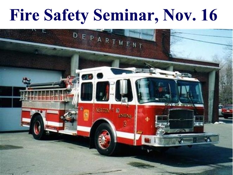 The Newton Senior Center will host a Fire Safety Seminar led by the Newton Fire Department at the Hyde Community Center (90 Lincoln Street, Newton Highlands) on November 16, Noon-1PM. Meet the Newton Fire Department and learn all about fire safety, including: how to use and maintain smoke detectors and carbon monoxide detectors, how to use a fire extinguisher, how to deal with different types of kitchen fires, and how to prevent common tripping and electrical hazards. Learn about helpful assistive fire safety devices for those with a hearing impairment, and receive a Home Safety Checklist. Please RSVP by calling 617-796-1675, stopping by the Senior Center Front Desk (20 Hartford Street, Newton Highlands), or emailing your name, phone number, and address to [email protected].