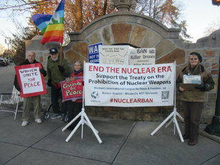 Newton Dialogues on Peace and War, the Women’s International League for Peace and Freedom, and Massachusetts Peace Action are organizing a local demonstration on November 26, joining with other world wide demonstrations supporting the Global Day Of Action Against Nuclear Weapons that day. Join this local demonstration at the corner of Beacon…