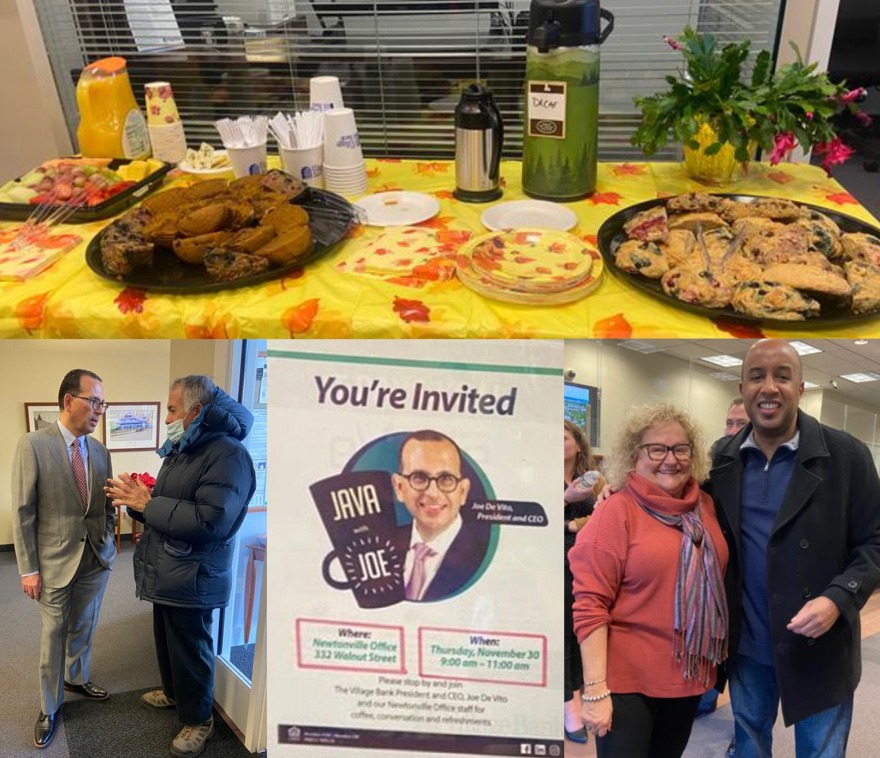 Newtonville’s Java with Joe was the last of three coffee events this fall season. In April of 2024, The Village Bank will host the spring season with three morning coffee events at three different branches, followed by three fall events. Refreshments are generally locally sourced.