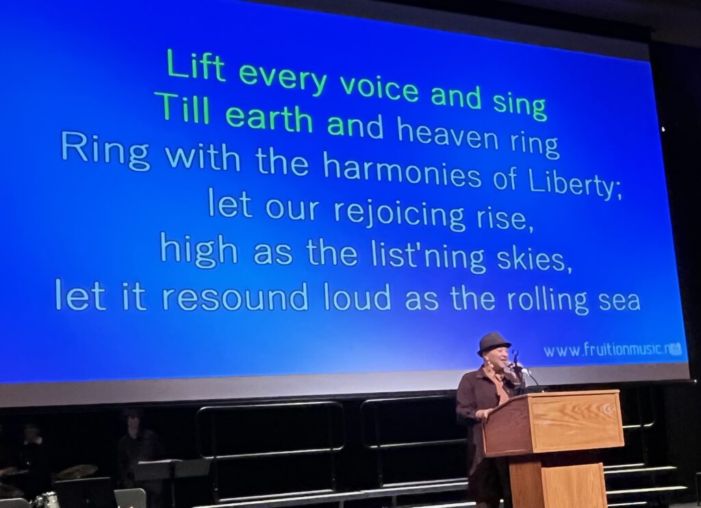 As Katani Sumner started to perform Lift Every Voice and Sing on January 15, she encouraged the entire audience in the Newton North High School auditorium to join in as the moving lyrics were projected behind her.