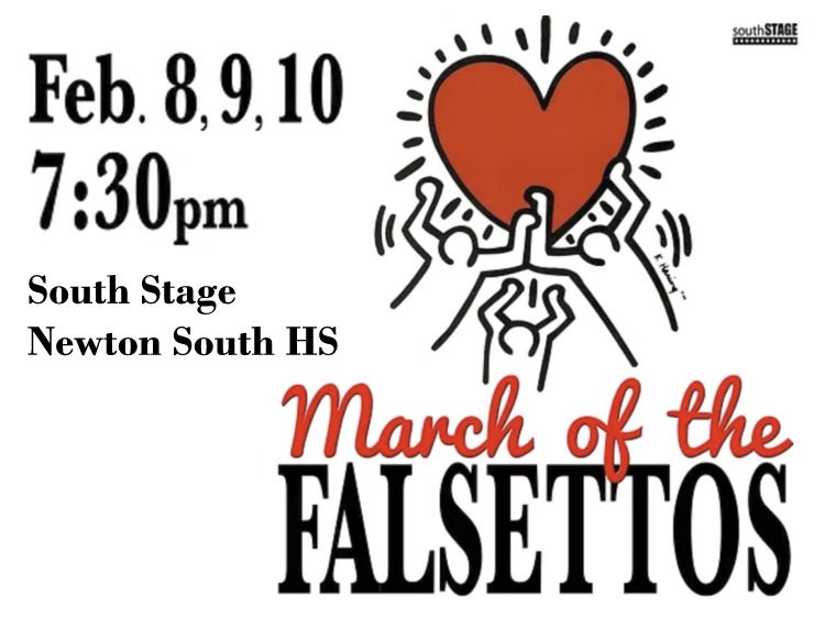 Newton South’s South Stage will present March of the Falsettos at 7:30PM on February 8, 9 and 10 at Newton South HS (140 Brandeis Road). Tickets are available online. Directed by Ben Miner NSHS ’24 with musical direction by Brendan Qi, this one-act musical by William Finn follows Marvin and…