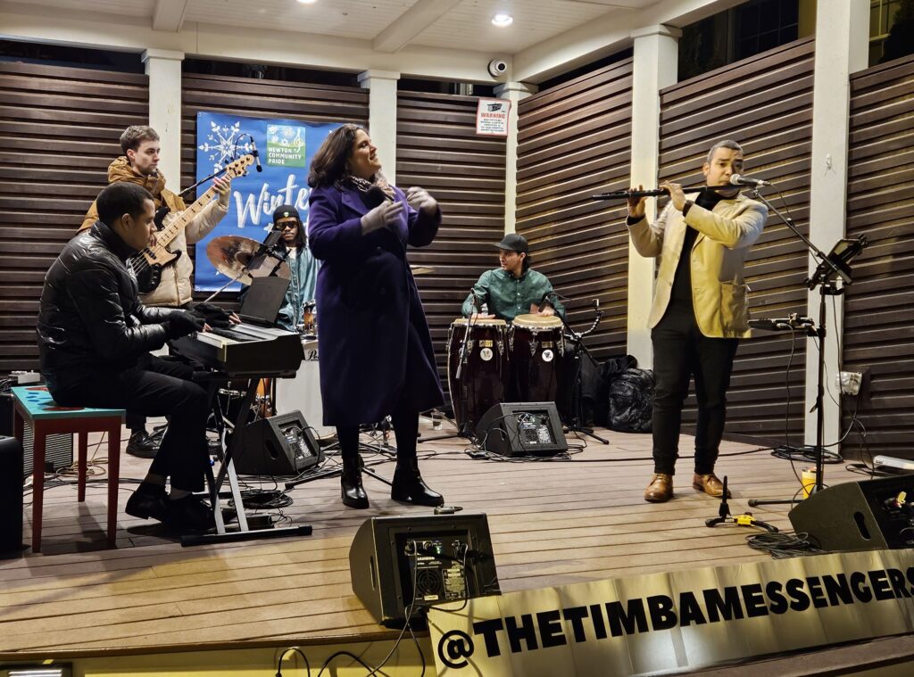 Lighting up the dark winter night were ever-moving glow-in-the-dark hula hoops and an ongoing participatory light installation. Adding another layer of warmth, the Timba Messengers, a Latin jazz and salsa band, played to an enthusiastic, moving, and dancing crowd. The band was a huge hit at Chris Pitt’s Piano Summit and the Community Pride Festival of the Arts — and the obvious choice for WinterFEST.