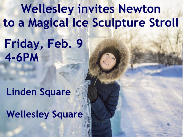 Wellesley invites Newton to its Magical Ice Sculpture Stroll on Friday, February 9, 4PM-6PM, in two locations: