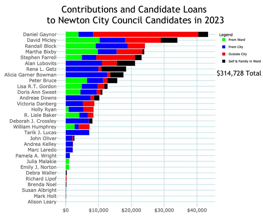 All contributions and candidate loans to Newton City Council candidates in 2023 (data: ocpf.us)