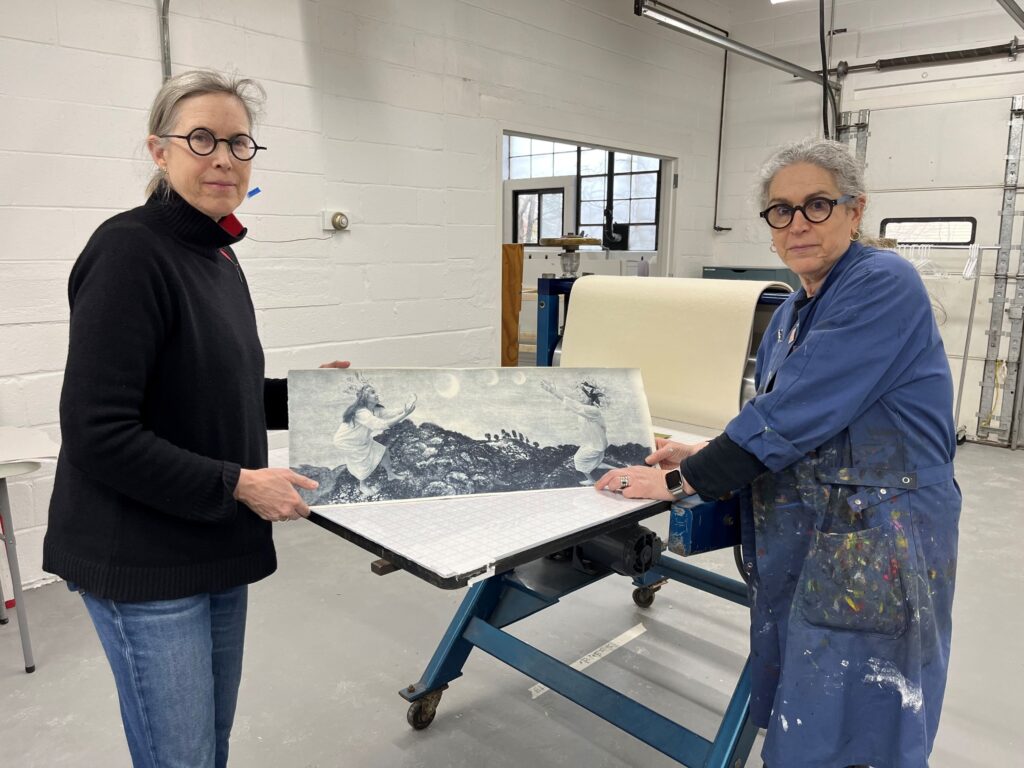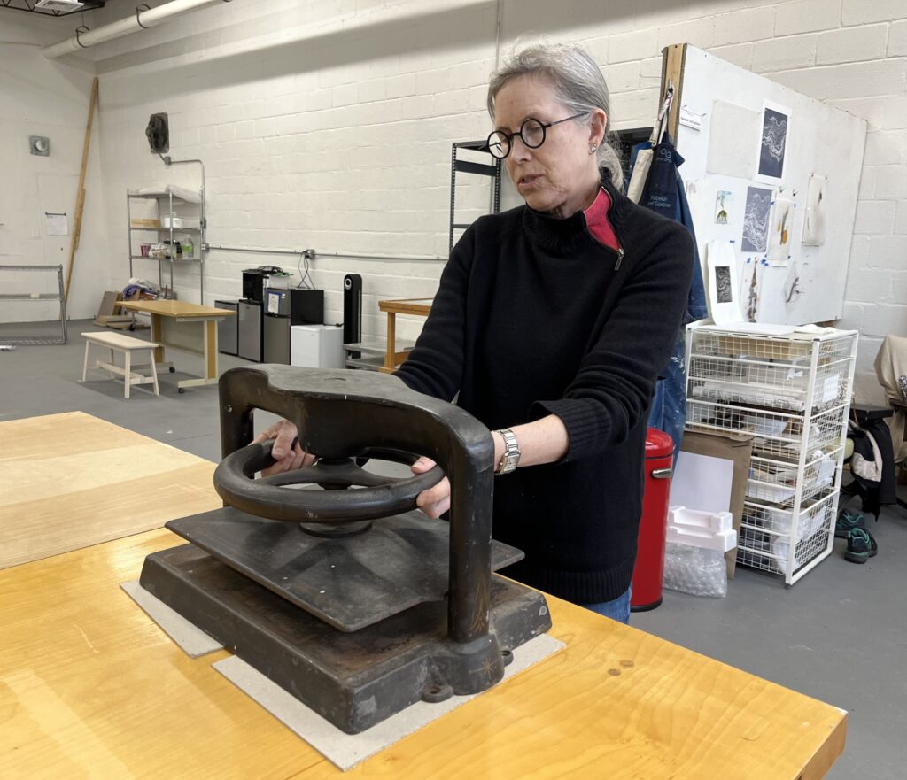Sandra Cardillo, who was working on repurposing her earlier prints and using them in collages and as elements of books in the future, was eager to explore the new book workroom.