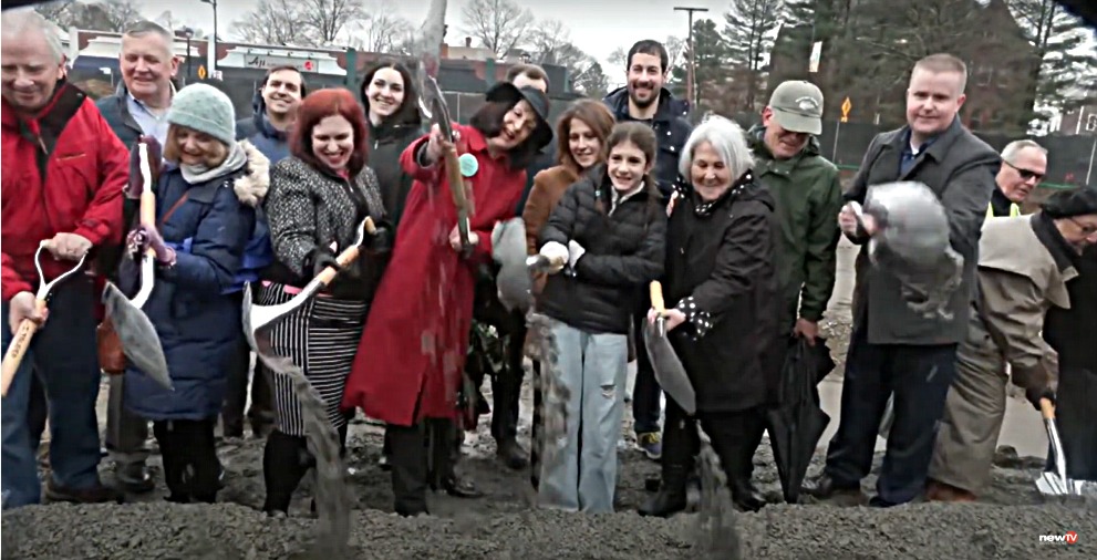 On March 7, Mayor Ruthanne Fuller, members of the City Council, the Council on Aging, family, and residents gathered on Walnut Street in Newtonville for the official groundbreaking of the Cooper Center for Active Living, named in honor of Audrey Cooper and slated for completion in 2025. At the groundbreaking, her daughter Marion Pollock, her granddaughter Sarah DeMedeiros, and her great-granddaughter, 11-year-old Penelope DeMeideiros, were among the first to wield shovels at the future site of the Cooper Center for Active Living.